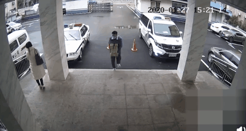 某派出所,一名男子匆忙丢下500个口罩,说了句:“你们辛苦了!”转身就跑。