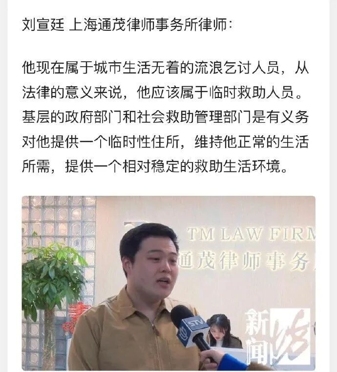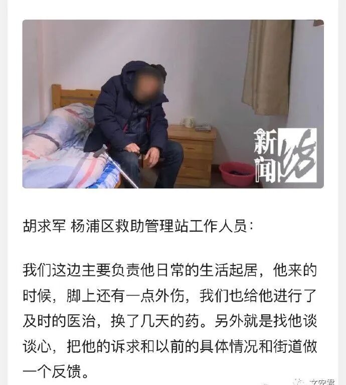 首先,杨浦区救助站收容了刘大爷,